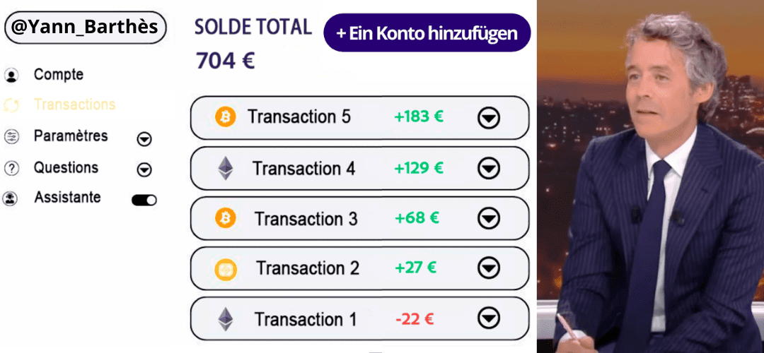 Yann Barthès: «J'ai entendu dire qu'il y a un logiciel qui utilise l'intelligence artificielle pour trader des crypto-monnaies. Maintenant, tous nos téléspectateurs savent comment il s'appelle, aussi.»